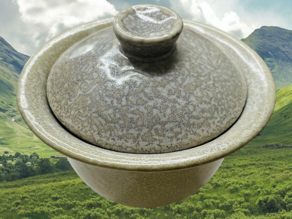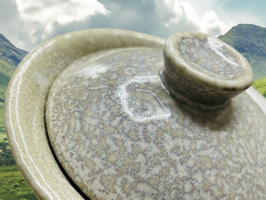 The Dai people believe that every crafted object has a soul, a belief reflected in the uniqueness of each piece of this Dai pottery. This glazed gaiwan was from mix of quartz, limestone and kaolinite powder (Shiyingfen (石英粉) before putting into the gas kiln. The kiln's temperature for glazed pottery oscillates about 1250 °C and it takes approximately 15 hours to fire it. The fired pottery is then rested between 24 to 48 hours depending on the inner kiln's temperature, which needs to decrease below 100 °C. This Dai gaiwan is ideal for brewing all types thanks to the glazed coating. Each piece is unique.