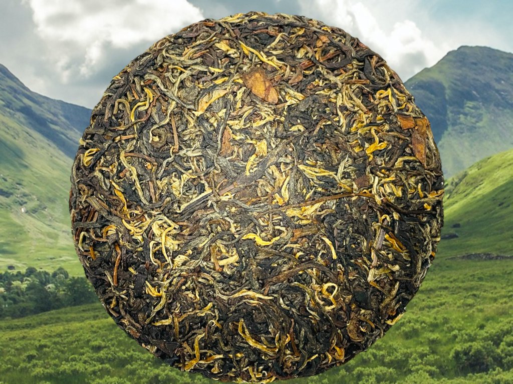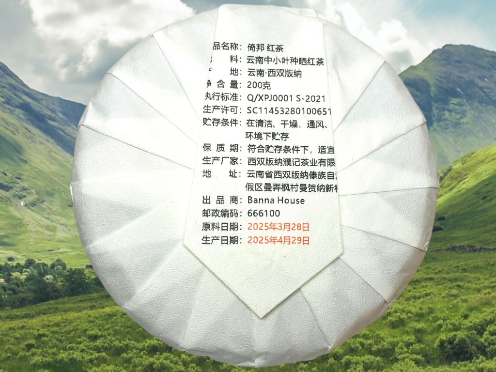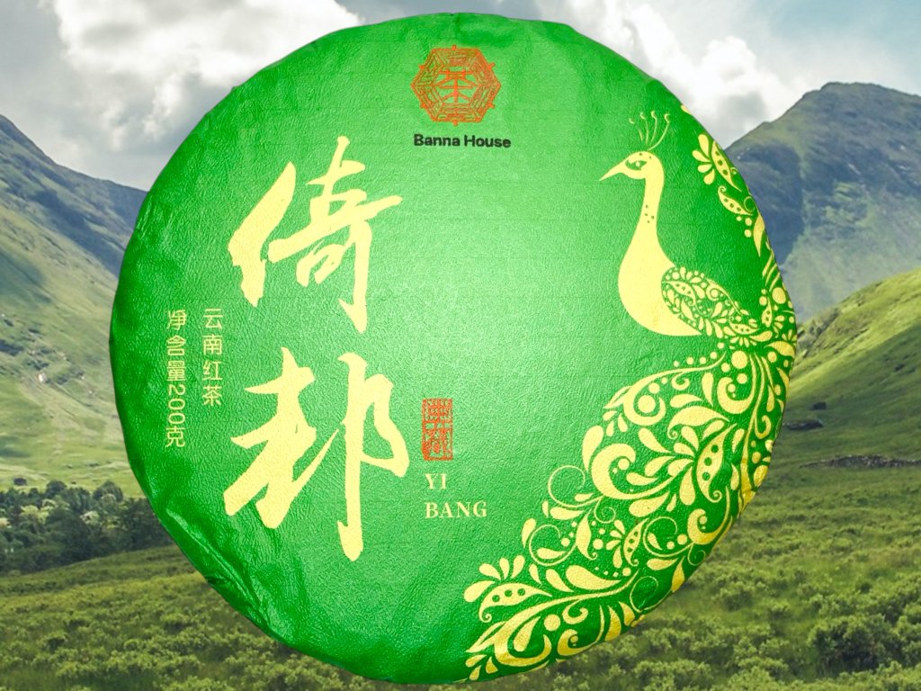 Fresh Yunnan Red Tea from Jiabu village (架布) at Yibang Tea Mountain (倚邦山). Tea was harvested and compressed in Spring 2025. Jiabu village is located in close neighbourhood from Xiangming (象明乡) in Mengla County (勐海县), an important transportation hub between Mangzhi (莽枝), Yibang (倚邦) and Manzhuan (蛮专) Ancient Tea Mountains in Mengla County (勐腊县). The tea leaves come from mature tea trees (qiaomu 桥木), which were collected across Jiabu tea gardens at the elevation about 1300 m.a.s.l. Unlike the Yiwu Qiaomu Hongcha 2024, this tea was harvested during the first Spring harvest in 2025 (Touchun 头春), which is even more precious, sweeter and more complex. The green covers with golden peacock presents one of the symbols of Xishuangbanna (kingdom of plants and animals in tropical rain forests) and refers to rich Dai Kingdom history, also known as Sipsongpanna" (西双版纳) or "Mengbalanaxi" (勐巴拉娜西) between 1180-1993*.