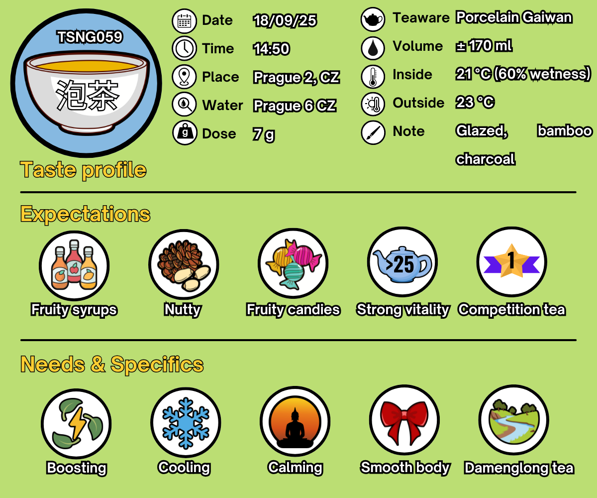 - Advanced phase (> 5 infusions) - fresh grounded nuts (pine nuts, lotus seed) with sweet undertones of light musk, wild olives and forest honey