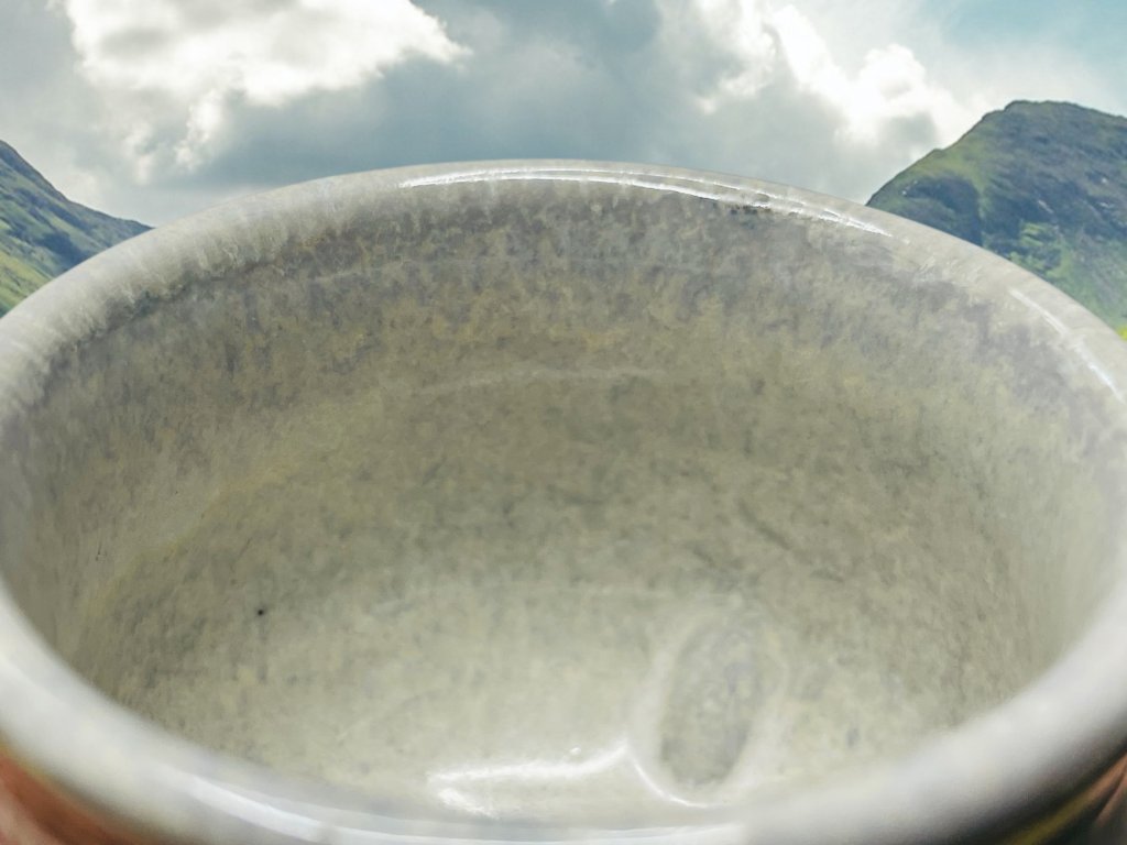 Daiové věří, že každá věc má duši, o čemž svědčí i jedinečnost každého kusu této Daiské keramiky. Tento glazovaný šálek byl vyroben ze směsi křemene, vápence a kaolínu (Shiyingfen 石英粉), který je nanášen před výpalem v plynové peci. Teplota uvnitř pece v případě glazované keramiky se pohybuje kolem 1250 °C a doba výpalu trvá přibližně 15 hodin. Vypálená keramika se následně nechá odležet po 24 až 48 hodin v závislosti na vnitřní teplotě pece, která musí vychladnout na méně než 100 °C. Tento Daiský gaiwan je vhodný na přípravu všech typů čajů s ohledem na glazovaný povrch. Každý kus je jedinečný.