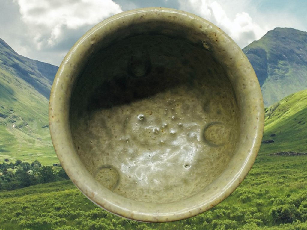 Daiové věří, že každá věc má duši, o čemž svědčí i jedinečnost každého kusu této Daiské keramiky. Tento glazovaný šálek byl vyroben za použití popela z páleného dřeva a travin (Caomuhui 草木灰), který je nanášen před výpalem v plynové peci. Teplota uvnitř pece v případě glazované keramiky se pohybuje kolem 1250 °C a doba výpalu trvá přibližně 15 hodin. Vypálená keramika se následně nechá odležet po 24 až 48 hodin v závislosti na vnitřní teplotě pece, která musí vychladnout na méně než 100 °C. Tento Daiský šálek je vhodný na přípravu všech typů čajů s ohledem na glazovaný povrch. Každý kus je jedinečný.