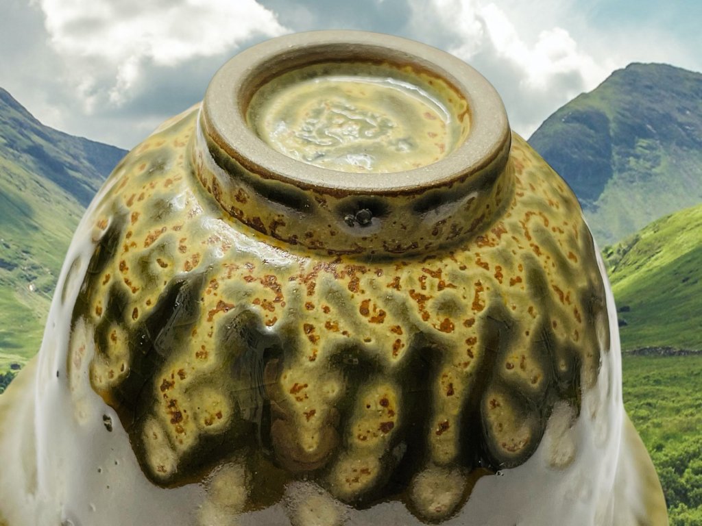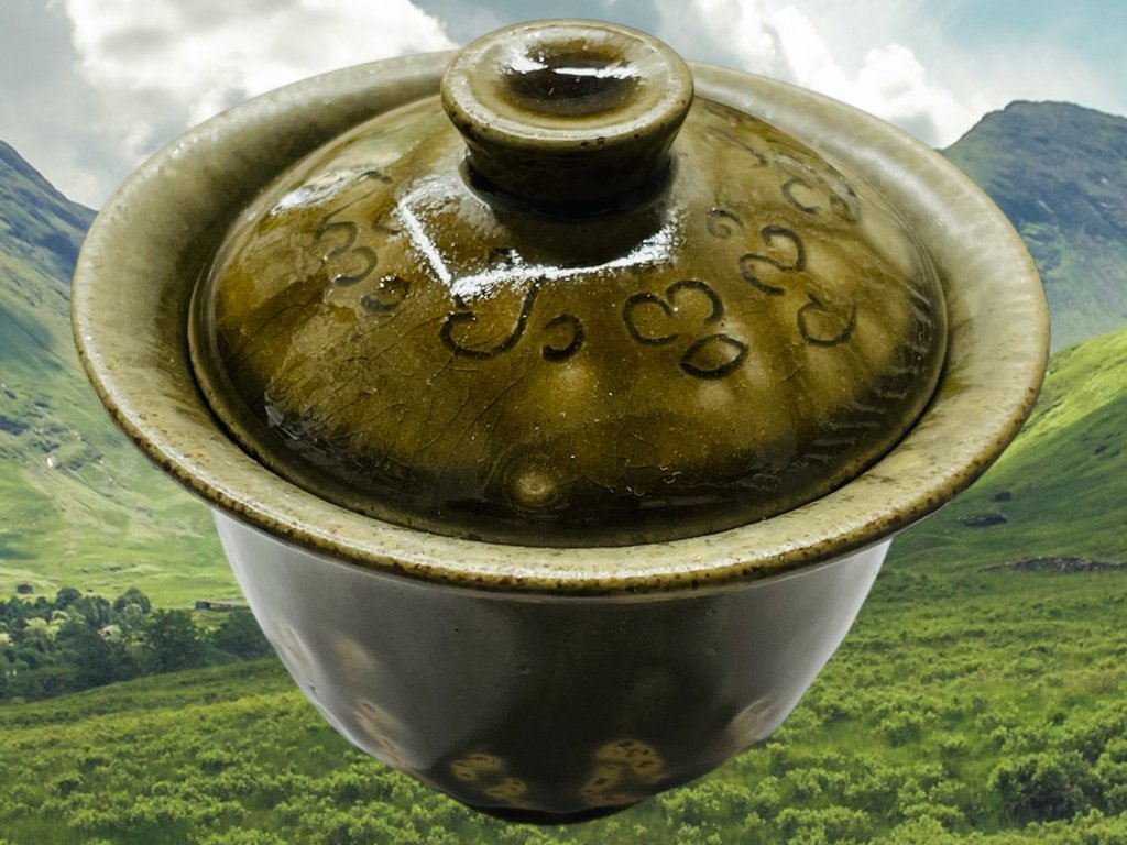 Daiové věří, že každá věc má duši, o čemž svědčí i jedinečnost každého kusu této Daiské keramiky. Tento glazovaný gaiwan byl vyroben za použití popela z páleného dřeva a travin (Caomuhui 草木灰), který je nanášen před výpalem v plynové peci. Teplota uvnitř pece v případě glazované keramiky se pohybuje kolem 1250 °C a doba výpalu trvá přibližně 15 hodin. Vypálená keramika se následně nechá odležet po 24 až 48 hodin v závislosti na vnitřní teplotě pece, která musí vychladnout na méně než 100 °C. Tento Daiský gaiwan je vhodný na přípravu všech typů čajů s ohledem na glazovaný povrch. Každý kus je jedinečný.