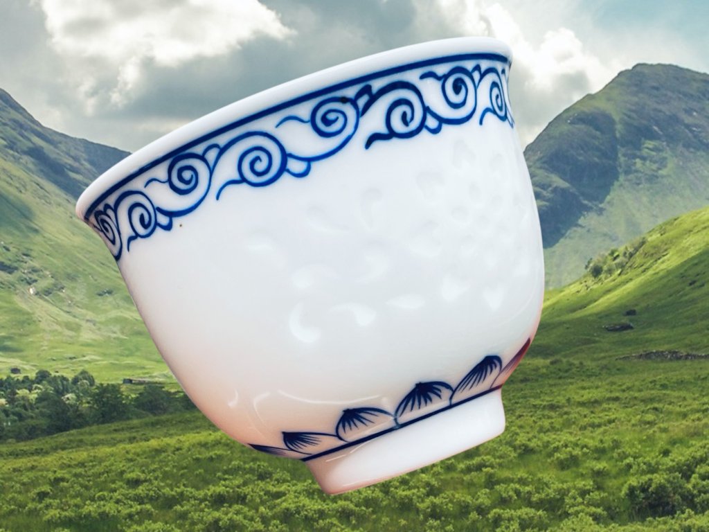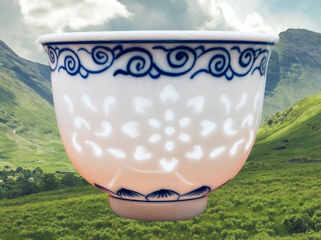 Objevte půvab tradičního a ručně vyráběného čínského porcelánu z Jingdezhen, prastarého města s více než 1000 letou historií výroby čajové keramiky a porcelánu z čínské provincie Jiangxi (江西). Tento čajový šálek zdobí elegantní ručně malovaná krajina v tmavých kobaltově modrých odstínech (qinghua 青花) a překrásná průsvitná okýnka vyplněná glazurou vytvořená tradiční "rýžovou" technikou (Linglong 玲珑). Díky vysokoteplotnímu výpalu má glazura na povrchu jemné praskliny, které každému šálku dodávají jedinečný charakter a jemnou prastarou texturu. Glazovaný šálek je vhodný pro přípravu všech typů čajů. Malba je nanášena pod glazurou. Pečeť nese nápis "vyrobeno v Jingdezhen" (景德镇制).