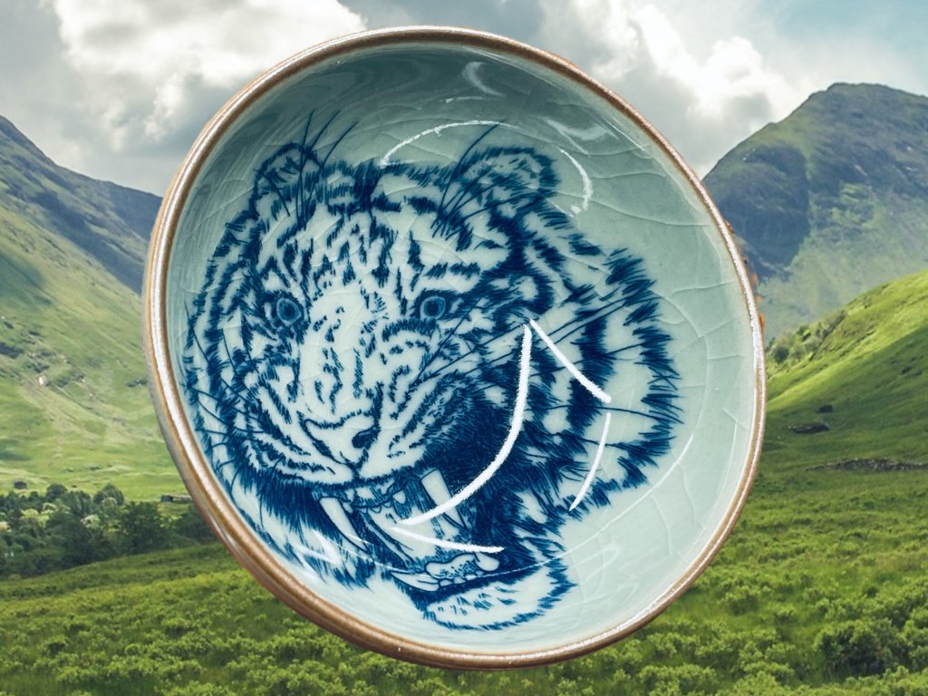 Objevte půvab tradičního a ručně vyráběného čínského porcelánu z Jingdezhen, prastarého města s více než 1000 letou historií výroby čajové keramiky a porcelánu z čínské provincie Jiangxi (江西). Tento čajový šálek zdobí elegantní ručně malovaný tygr v tmavých kobaltově modrých odstínech (qinghua 青花). Díky vysokoteplotnímu výpalu má glazura na povrchu jemné praskliny, které každému šálku dodávají jedinečný charakter a jemnou prastarou texturu. Glazovaný šálek je vhodný pro přípravu všech typů čajů. Malba je nanášena pod glazurou. Pečeť nese nápis "vyrobeno v Jingdezhen" (景德镇制).