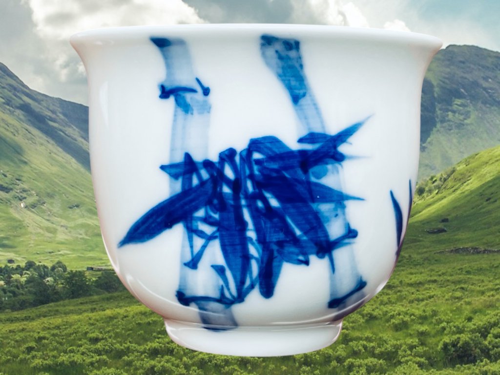 Objevte půvab tradičního a ručně vyráběného čínského porcelánu z Jingdezhen, prastarého města s více než 1000 letou historií výroby čajové keramiky a porcelánu z čínské provincie Jiangxi (江西). Tento čajový šálek zdobí elegantní ručně malovaného bambusu v tmavých kobaltově modrých odstínech (qinghua 青花). Díky vysokoteplotnímu výpalu má glazura na povrchu jemné praskliny, které každému šálku dodávají jedinečný charakter a jemnou prastarou texturu. Glazovaný šálek je vhodný pro přípravu všech typů čajů. Malba je nanášena pod glazurou. Pečeť nese nápis "vyrobeno v Jingdezhen" (景德镇制).