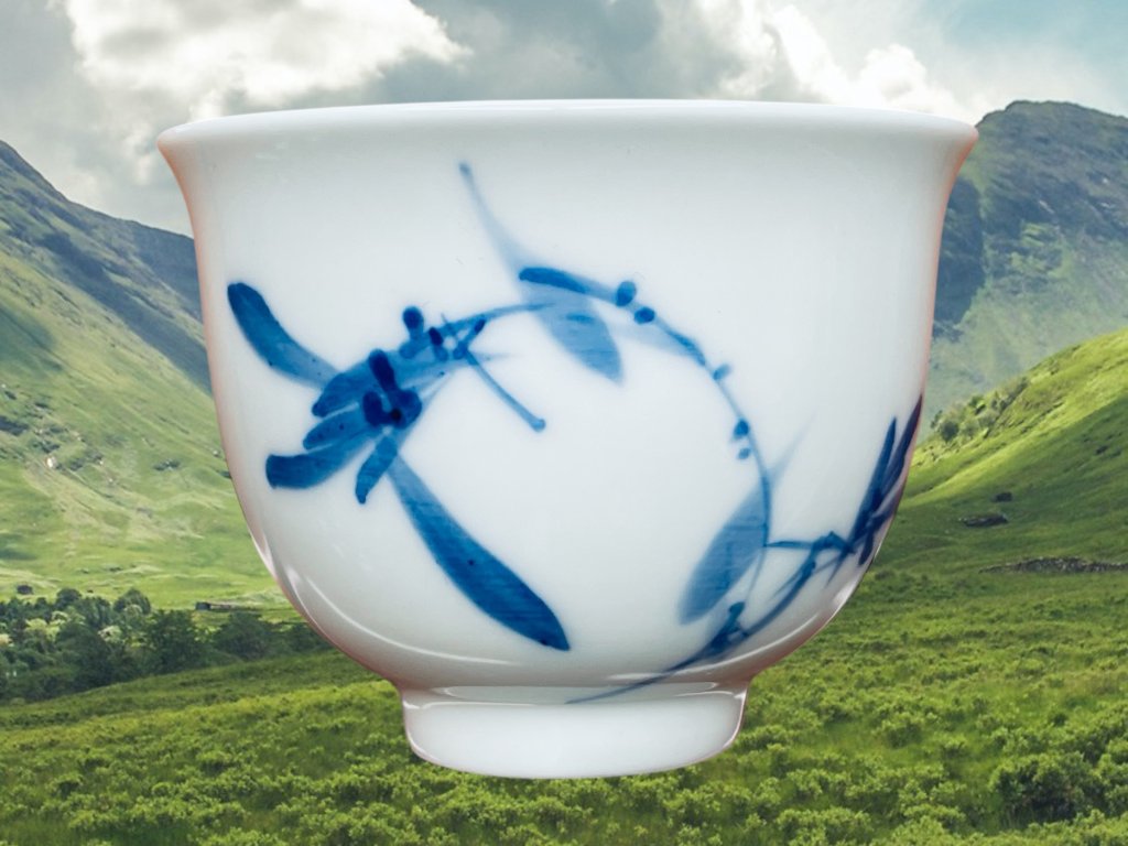 Objevte půvab tradičního a ručně vyráběného čínského porcelánu z Jingdezhen, prastarého města s více než 1000 letou historií výroby čajové keramiky a porcelánu z čínské provincie Jiangxi (江西). Tento čajový šálek zdobí elegantní ručně malovaných větviček v tmavých kobaltově modrých odstínech (qinghua 青花). Díky vysokoteplotnímu výpalu má glazura na povrchu jemné praskliny, které každému šálku dodávají jedinečný charakter a jemnou prastarou texturu. Glazovaný šálek je vhodný pro přípravu všech typů čajů. Malba je nanášena pod glazurou. Pečeť nese nápis "vyrobeno v Jingdezhen" (景德镇制).