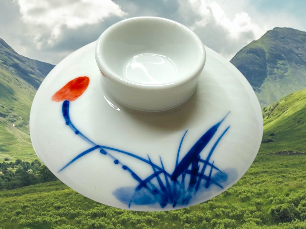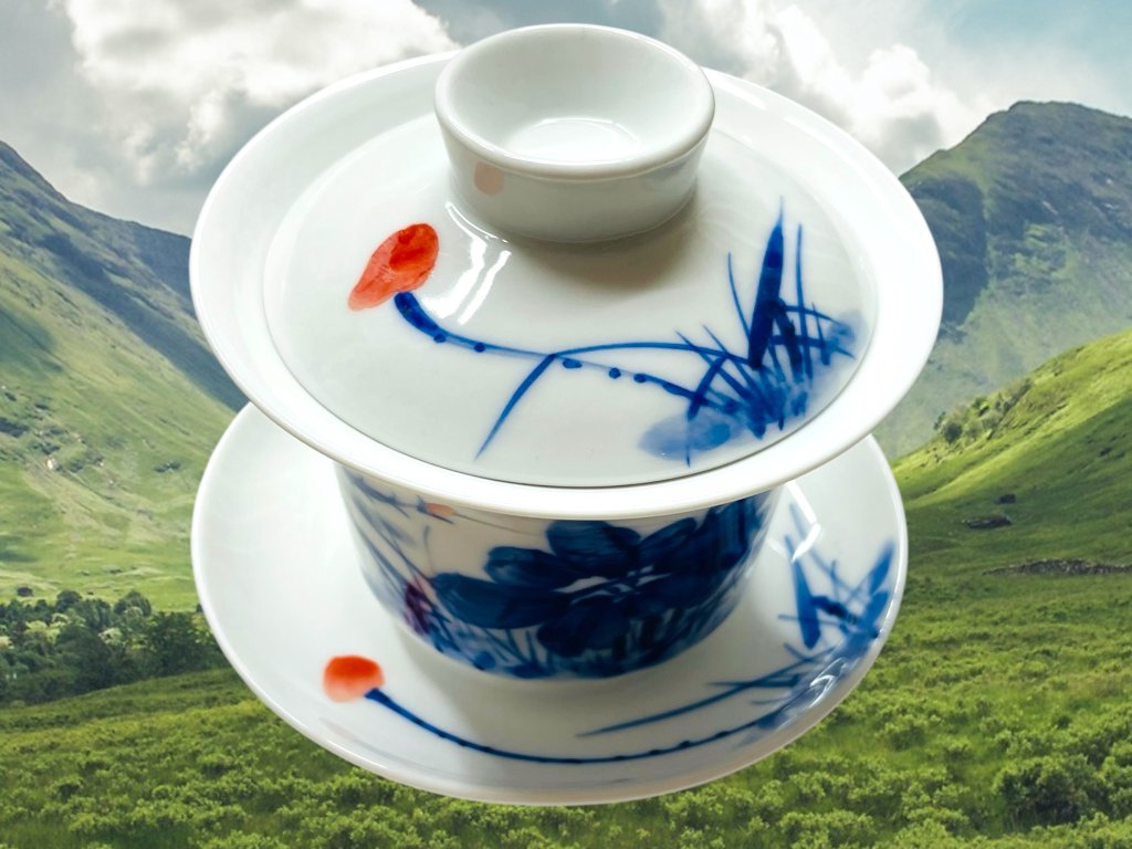 Objevte půvab tradičního a ručně vyráběného čínského porcelánu z Jingdezhen, prastarého města s více než 1000 letou historií výroby čajové keramiky a porcelánu v čínské provincii Jiangxi (江西). Tento gaiwan zdobí elegantní ručně malovaný motiv květin využívající techniku hluboké kobaltově modré malby charakteristický pro modro-bílý porcelán (qinghua 青花). Pečetě nesou nápis "vyrobeno v Jingdezhen" (景德镇制). Tento glazovaný gaiwan je vhodný pro přípravu všech typů čajů. Malba je nanášena pod glazurou.