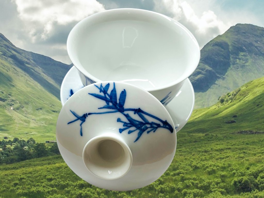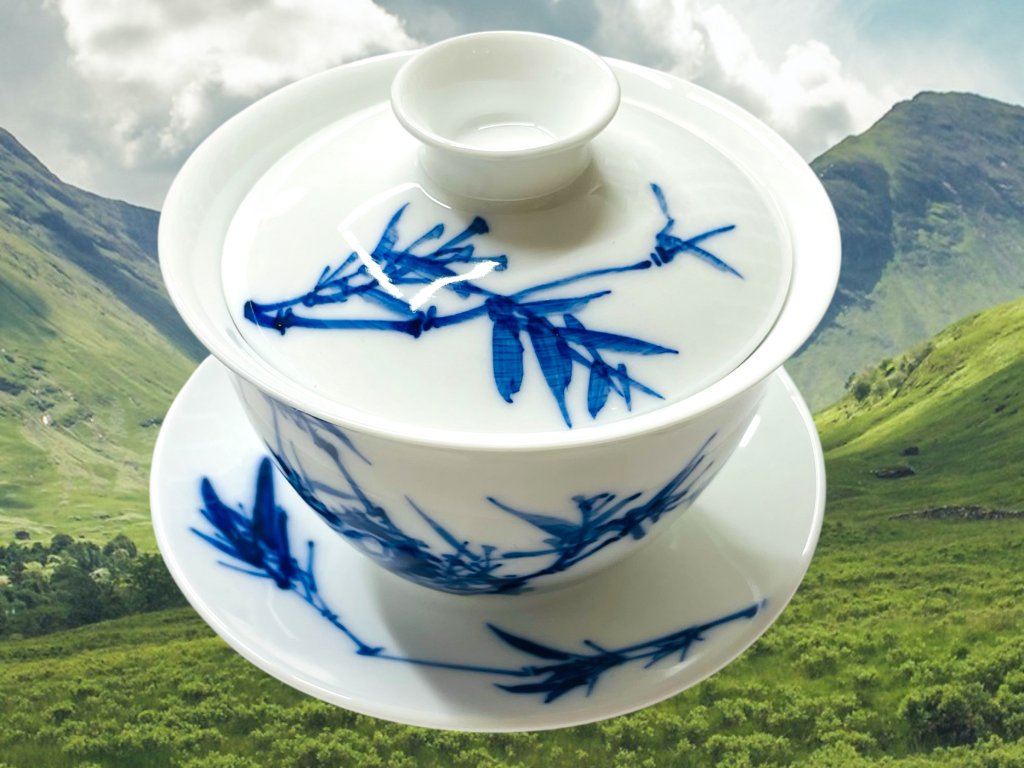 Objevte půvab tradičního a ručně vyráběného čínského porcelánu z Jingdezhen, prastarého města s více než 1000 letou historií výroby čajové keramiky a porcelánu v čínské provincii Jiangxi (江西). Tento gaiwan zdobí elegantní ručně malovaný motiv větviček využívající techniku hluboké kobaltově modré malby charakteristický pro modro-bílý porcelán (qinghua 青花). Pečetě nesou nápis "vyrobeno v Jingdezhen" (景德镇制). Tento glazovaný gaiwan je vhodný pro přípravu všech typů čajů. Malba je nanášena pod glazurou.