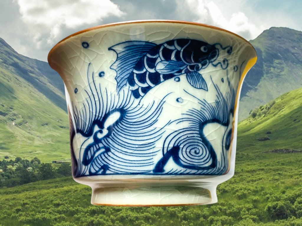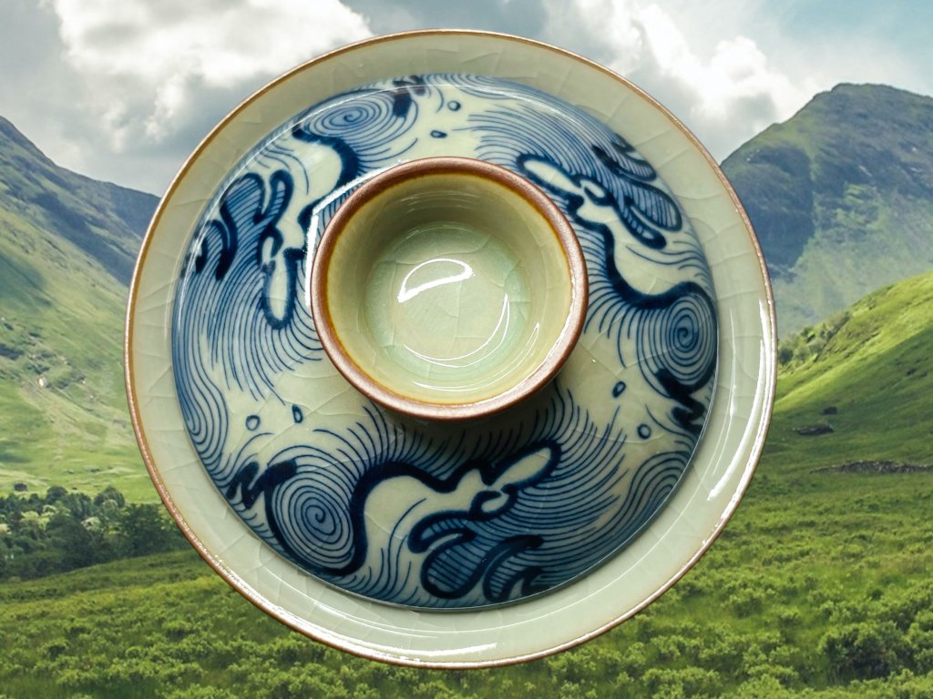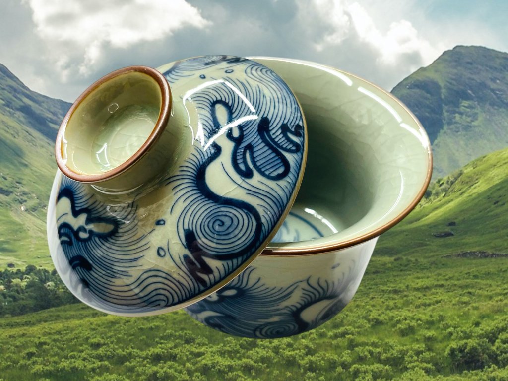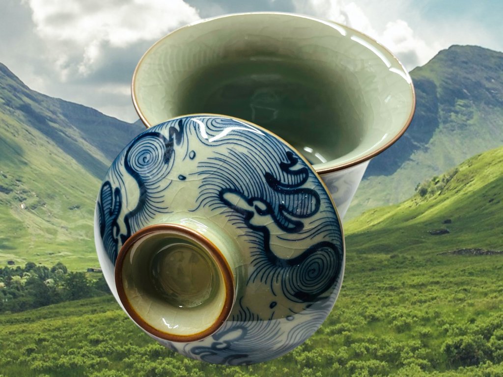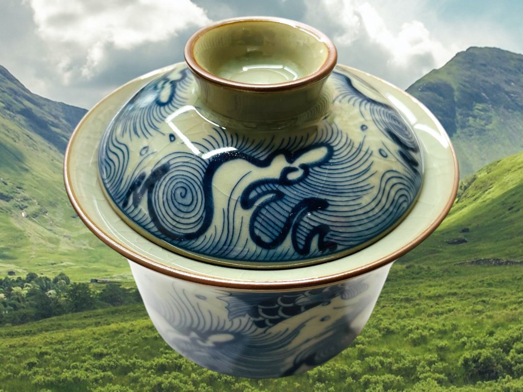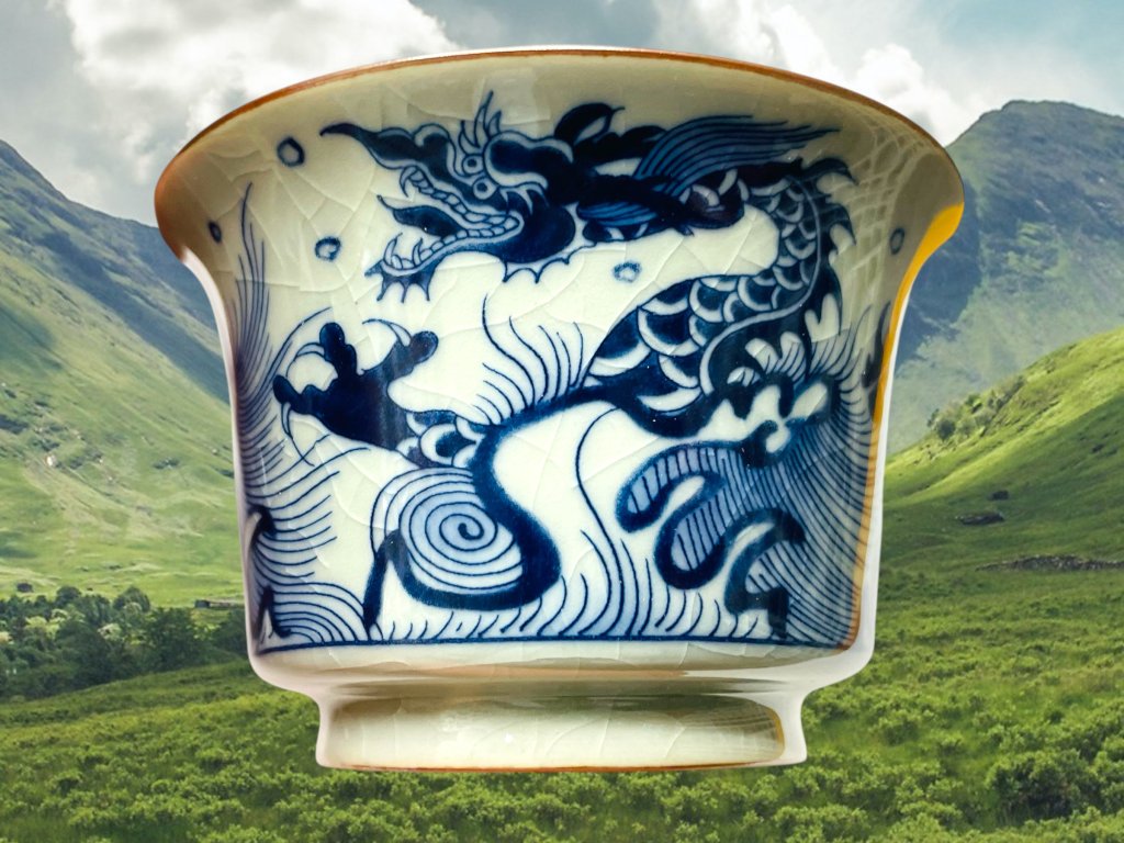 Objevte půvab tradičního a ručně vyráběného čínského porcelánu z Jingdezhen, prastarého města s více než 1000 letou historií výroby čajové keramiky a porcelánu v čínské provincii Jiangxi (江西). Tento gaiwan zdobí elegantní ručně malovaný motiv draka využívající techniku hluboké kobaltově modré malby charakteristický pro modro-bílý porcelán (qinghua 青花). Tento glazovaný gaiwan je vhodný pro přípravu všech typů čajů. Malba je nanášena pod glazurou. Na víčku rovněž naleznete „malý porcelánový buclík“ (Xuanting 悬停), který umožňuje stabilizovat víčko gaiwanu v šikmé poloze mezi jednotlivými nálevy. Jeho funkce je jak praktická, tak estitická, díky čemuž dovedete pozvědnout Vaše čajové dovednosti o krok dále během čajového obřadu.