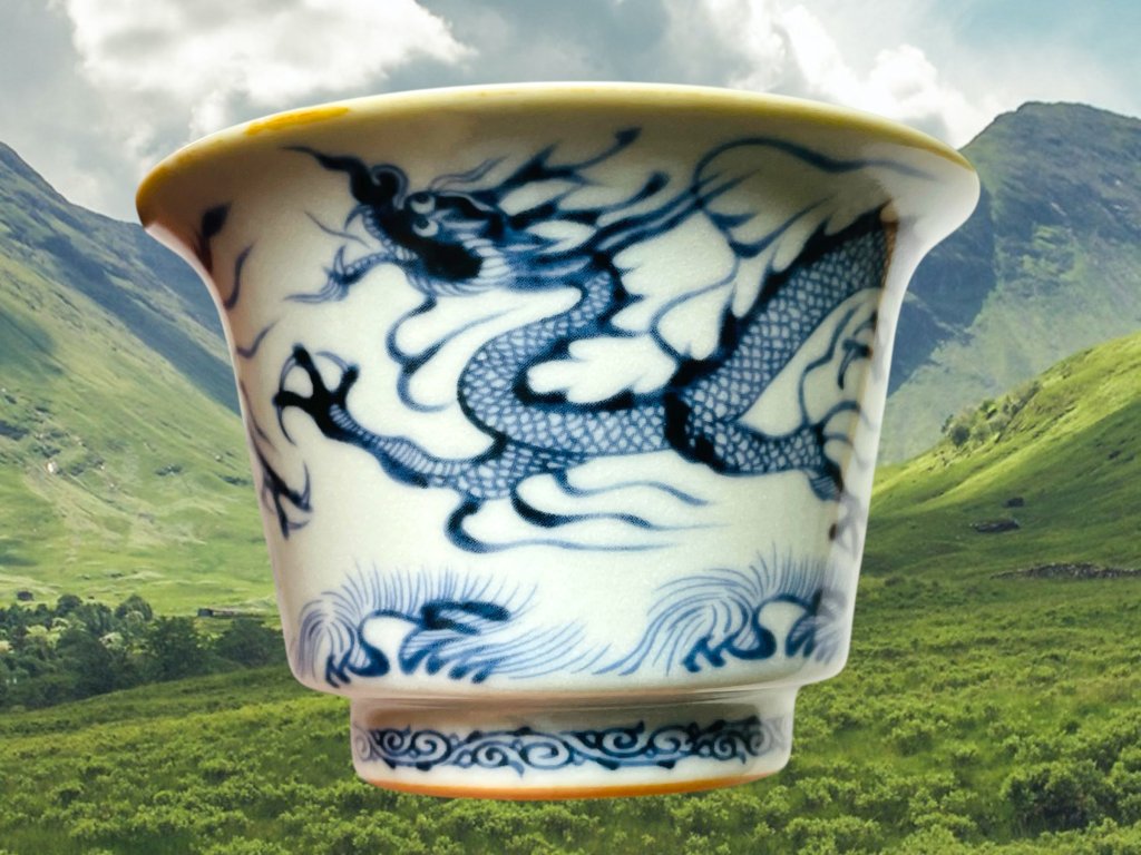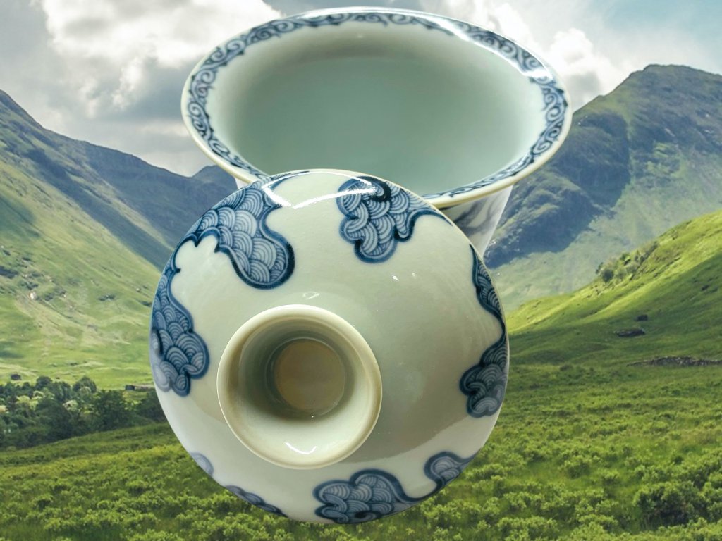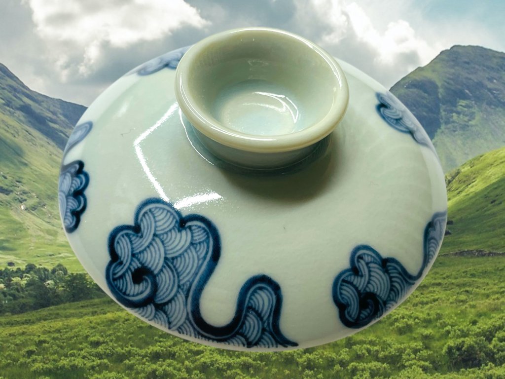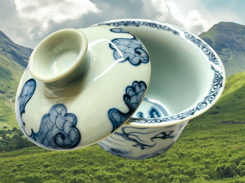 Objevte půvab tradičního a ručně vyráběného čínského porcelánu z Jingdezhen, prastarého města s více než 1000 letou historií výroby čajové keramiky a porcelánu v čínské provincii Jiangxi (江西). Tento gaiwan zdobí elegantní ručně malovaný motiv draka využívající techniku hluboké kobaltově modré malby charakteristický pro modro-bílý porcelán (qinghua 青花). Tento glazovaný gaiwan je vhodný pro přípravu všech typů čajů. Malba je nanášena pod glazurou. Na víčku rovněž naleznete „malý porcelánový buclík“ (Xuanting 悬停), který umožňuje stabilizovat víčko gaiwanu v šikmé poloze mezi jednotlivými nálevy. Jeho funkce je jak praktická, tak estitická, díky čemuž dovedete pozvědnout Vaše čajové dovednosti o krok dále během čajového obřadu.