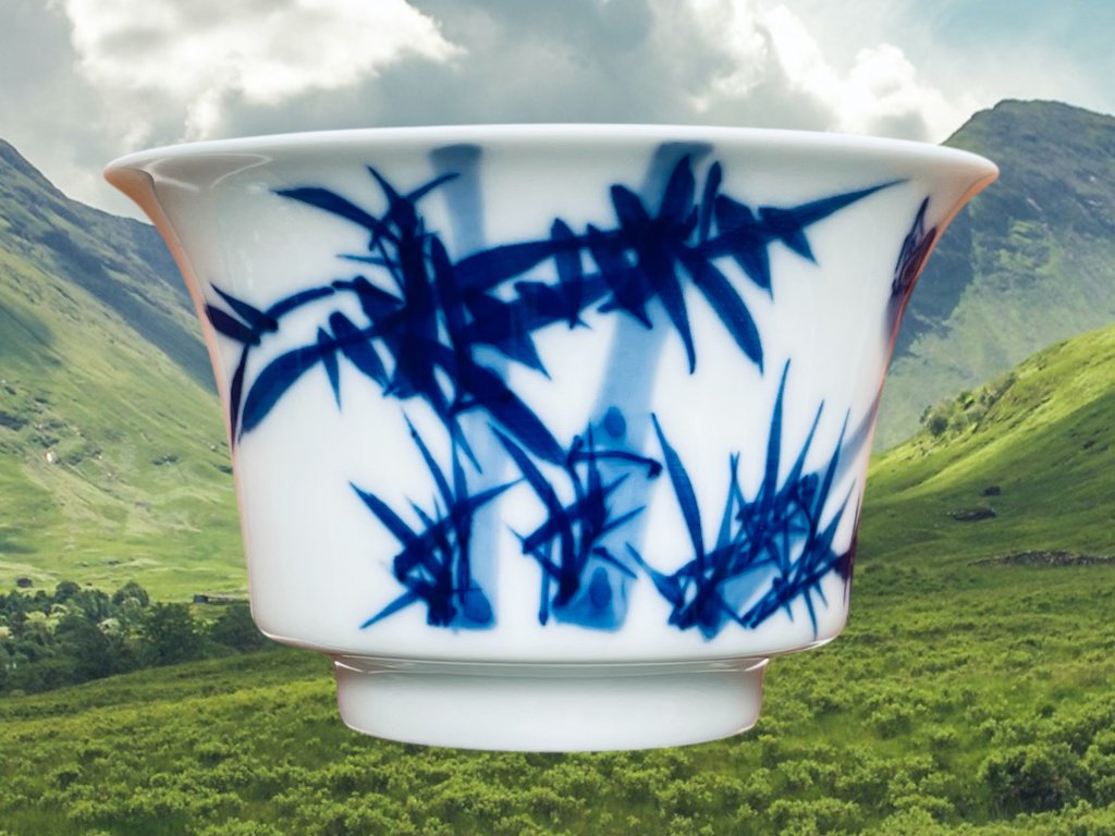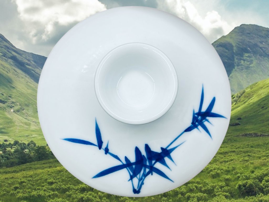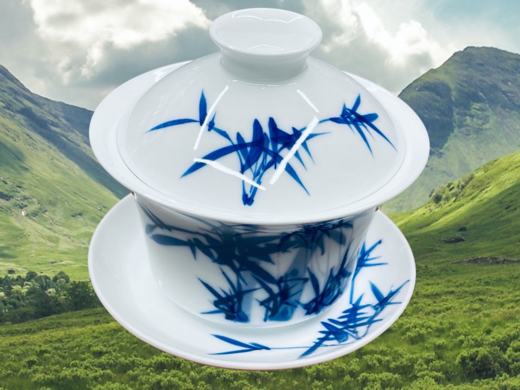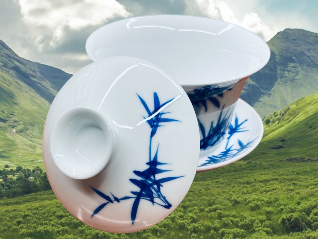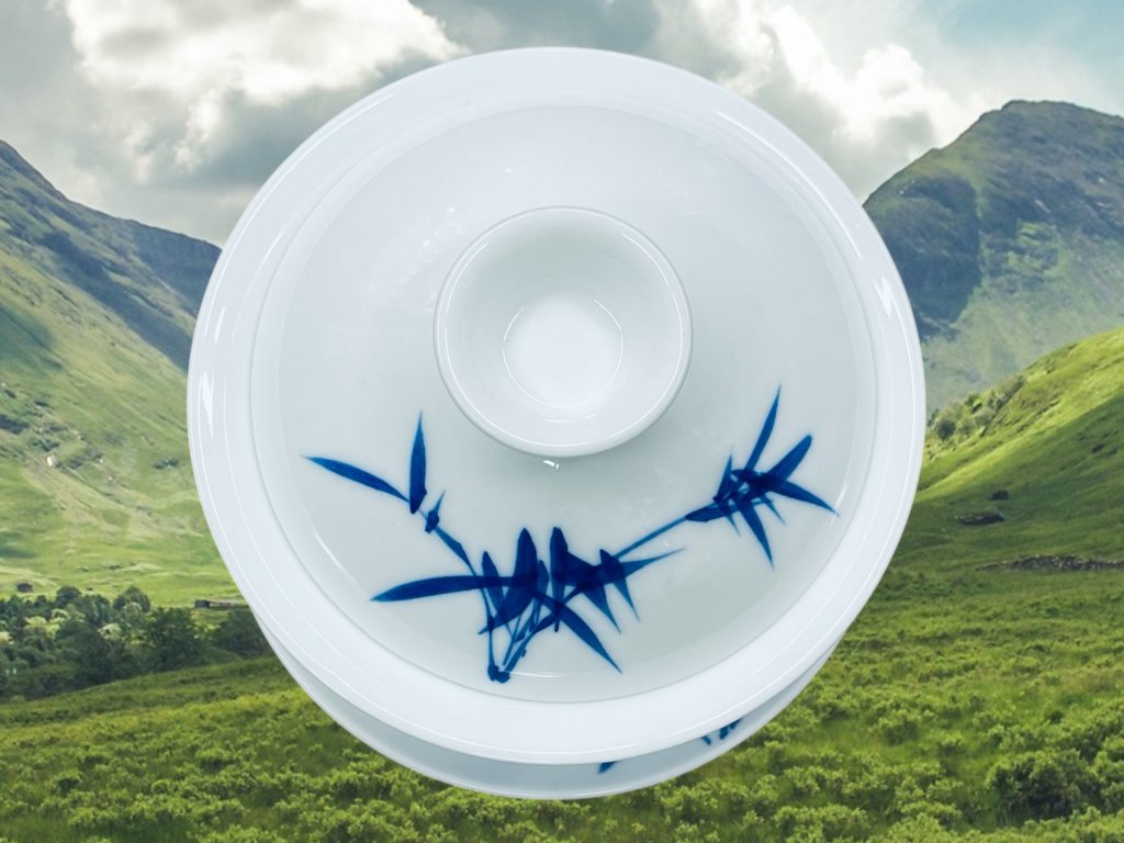 Objevte půvab tradičního a ručně vyráběného čínského porcelánu z Jingdezhen, prastarého města s více než 1000 letou historií výroby čajové keramiky a porcelánu v čínské provincii Jiangxi (江西). Tento gaiwan zdobí elegantní ručně malovaný motiv bambusu využívající techniku hluboké kobaltově modré malby charakteristický pro modro-bílý porcelán (qinghua 青花). Pečetě nesou nápis "vyrobeno v Jingdezhen" (景德镇制). Tento glazovaný gaiwan je vhodný pro přípravu všech typů čajů. Malba je nanášena pod glazurou.