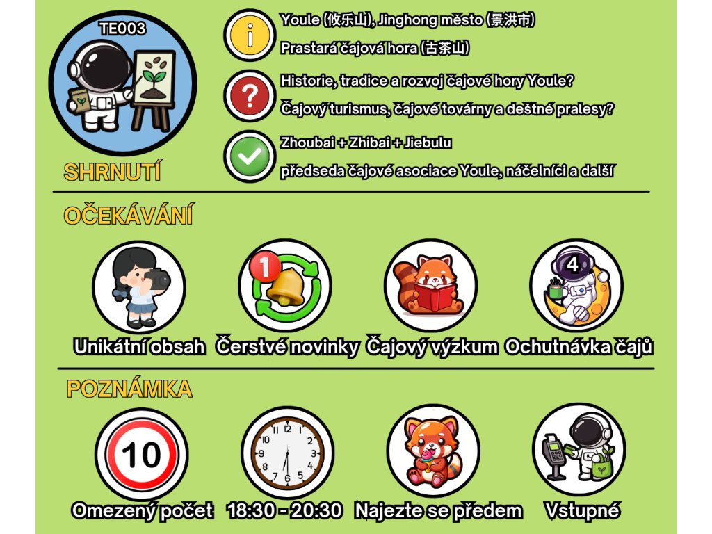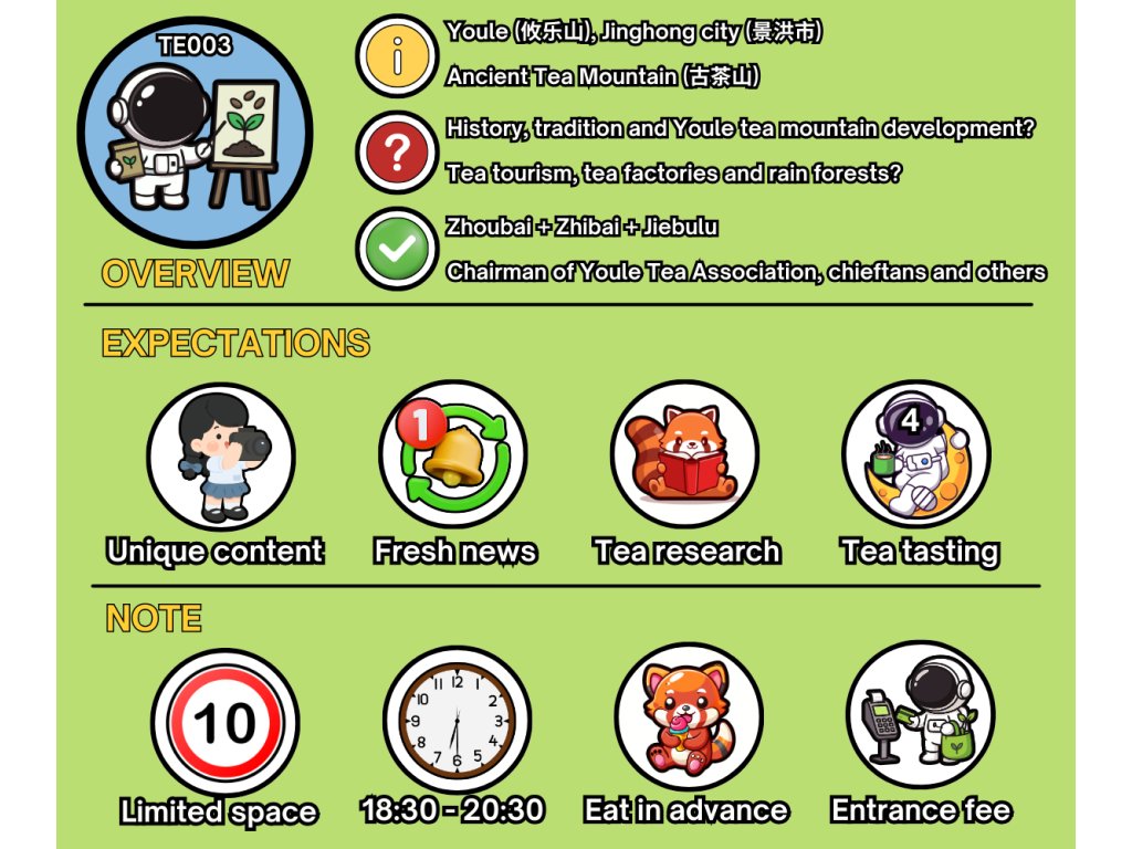 🍵| Během akce prochutnáme čtyři čaje (shengcha, shucha, baicha, hongcha) a podělíme se s Vámi o exkluzivní obsah pořízený během naší nedávné pracovní cesty po Xishuangbanně, včetně některých unikátních fotografií a videí z této oblasti.